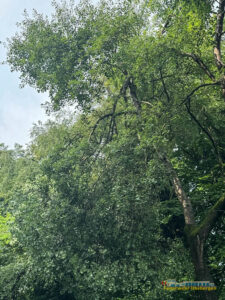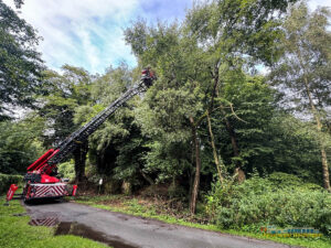 Im Bereich des Wanderparkplatzes drohte eine Baumkrone auf die Straße zu stürzen.